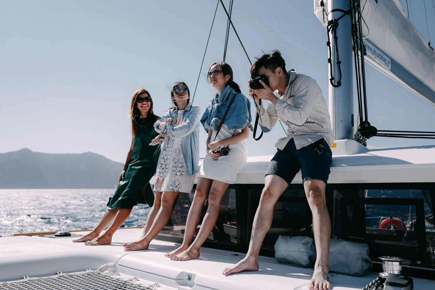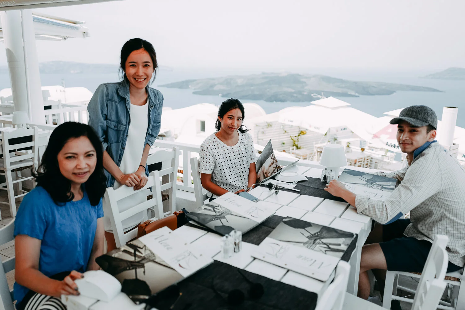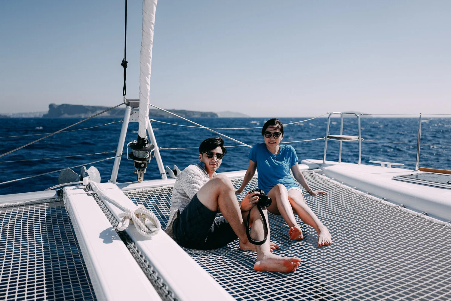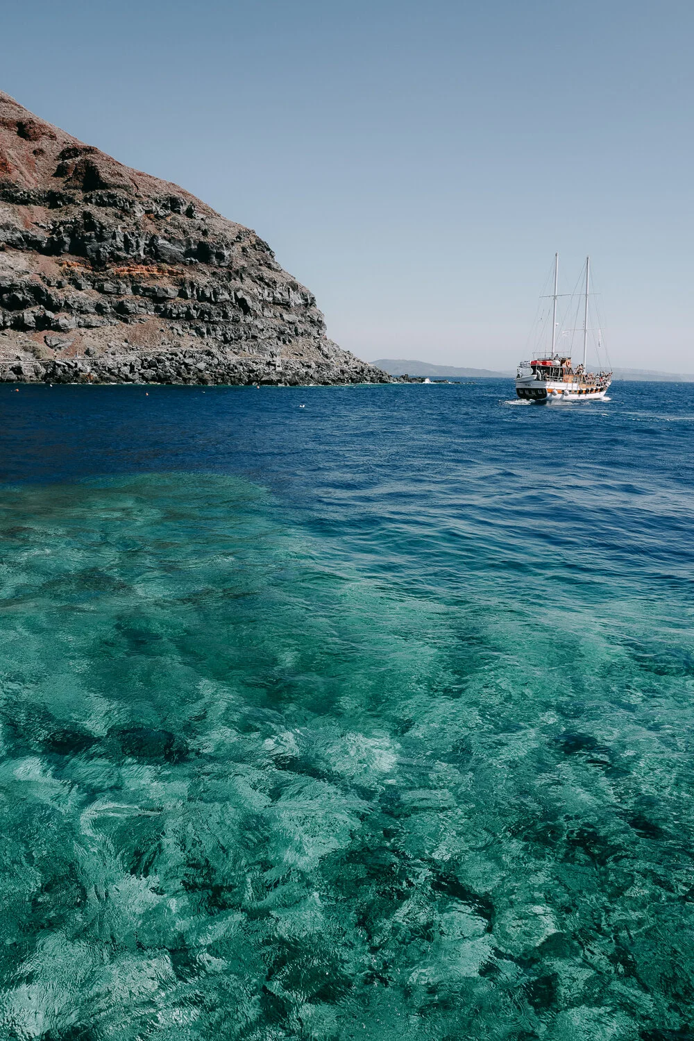 Kirini was our home for the duration of our Santorini stay. It was magical and is now my favorite hotel to date. I think I have a soft spot for white space and bodies of water. We took a catamaran ride in the evening to tour around the island. Although I was nervous because I usually get motion sickness, the staff were very accommodating: they provided medicine and distractions to keep my mind off the funny feeling down my stomach. It was quite an enjoyable ride and the scenery was definitely enough to keep my mind occupied. We also got a little unexpected splash (drenched the mom and the sister) due to a speedboat cutting right across our path. The staff immediately apologized, but we all laughed it off as the surprise splash became the highlight of our evening.