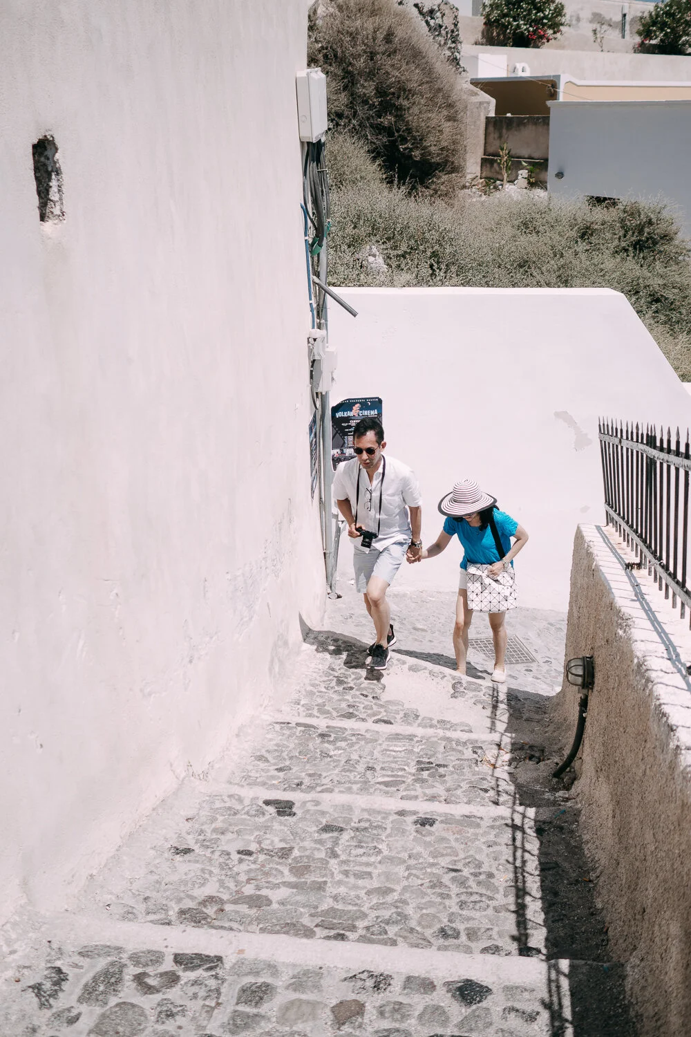 Santorini, in one day, just went high up my list of places to revisit. Definitely a very charming and romantic town. All the locals we interacted with were very friendly and welcoming. One caution: be prepared to hike. Santorini rests on top of the remains of an enormous volcanic eruption that destroyed the former single island. Because of its geography, you'll have to walk up and down a LOT of steps to get anywhere. We didn't mind the exercise and had an amazing time in Santorini.. which I'll show more of in Part Two!