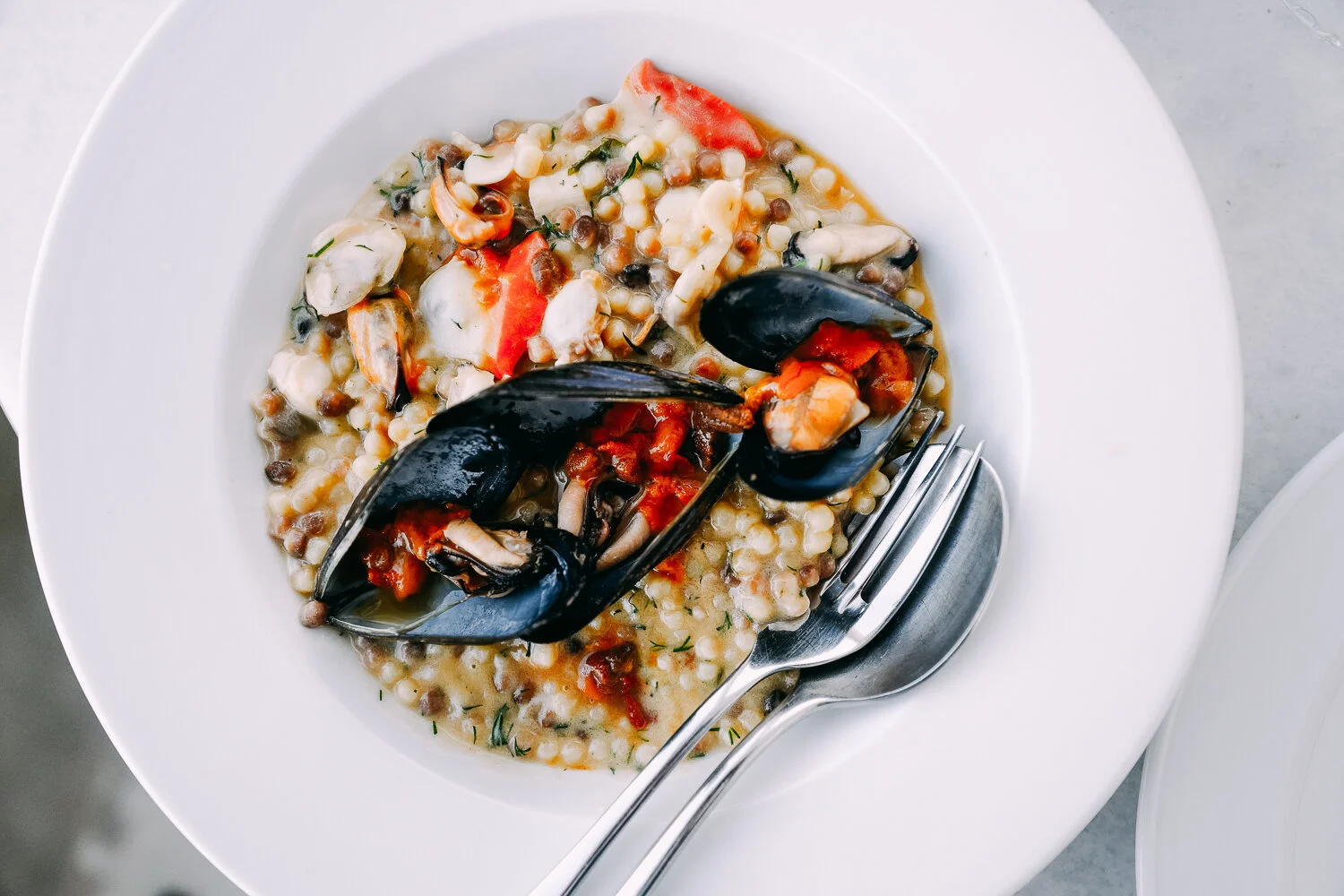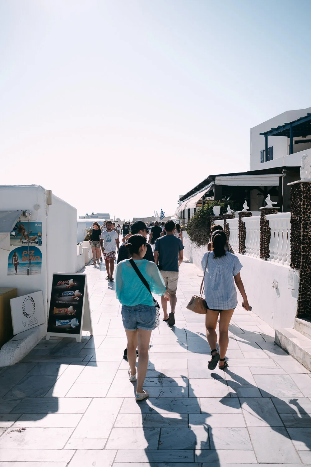 Lunch was at a lively and trendy beach-side restaurant: Seaside by Notos. Thanks to our lovely guide, we were offered to try a local spirit: Ouzo. It has a silky and distinct licorice flavor, which was definitely not my cup of tea. The restaurant is located right off the Perivolos beach and has additional seating on the beach for those who wish to be soaking the sun while enjoying their meal.